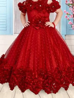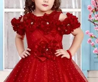 The dress is tailored with a flared skirt cut under the waistline that adds a princess look to it. This cut provides a trendy and adorable pattern in the dress that little girls can wear for a princess-type look. the flared skirt also provides a comfortable and breathable quality to the dress making it suitable to be worn for long durations if needed. There are many size options available in the dress that can be selected based on the exact age of the girl.