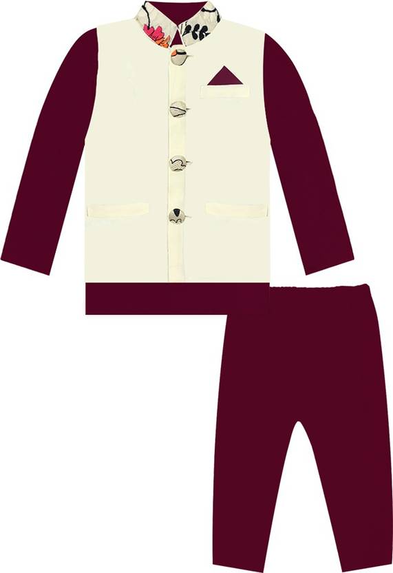 Boys Festive & Party Waistcoat and Pyjama Set (Maroon Pack of 3)