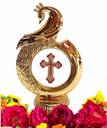 Gold Plated Jesus Cross Symbol in Peacock Design is a beautifully crafted spiritual item that combines faith and elegance. Jesus Cross symbol, representing sacrifice and love of Christ, is beautifully set within a peacock design, symbolizing beauty, grace, and divine presence of Holy Spirit. gold plating enhances its visual appeal, making it a striking addition to any space. Perfect for placing on a table, car dashboard, or desk, symbol serves as a constant reminder of faith, love, and divine protection. It brings positive energy, blessings, and spiritual connection to any environment.