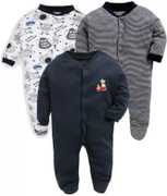 SMILEY APPU CLOTHING products are made of 100% cotton material. Soft fabrics well suited for babies skin. Snaps down front for easy dressing and diapering, doesn't have to pull over the baby's head. It has front open full sleeves sleepsuit hooded with foot for protecting your baby full covered. Made for baby's delicate skin friendly which make your kid more beautiful and more comfortable too. Cute print on solid color makes it attractive and stylish. A good protection from mosquito bites. Babies will be comfortable all day Long fabric Is stretchy and lightweight. It is suitable for all the seasons. Specifications: Type - Sleepsuit Fabric - 100% Cotton Sleeves - Full sleeve Type- Sleepsuit hooded with foot Neck - Ribbed Cuff and Neckline Closure - Front snap buttons Pattern - Night Wear Fit - Regular Fit Age- NB- 1 yr Package Included: 3 Sleepsuits hooded with foot Wash Care Instruction: Machine Washable with warm water Wash dark colors separately