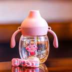Smiley mia Baby Sippy/Sipper Cup 340ml, Anti-Spill Design |Soft Silicone Spout & Straw, 6m+ - Silicone (MULTICOLOR 01)