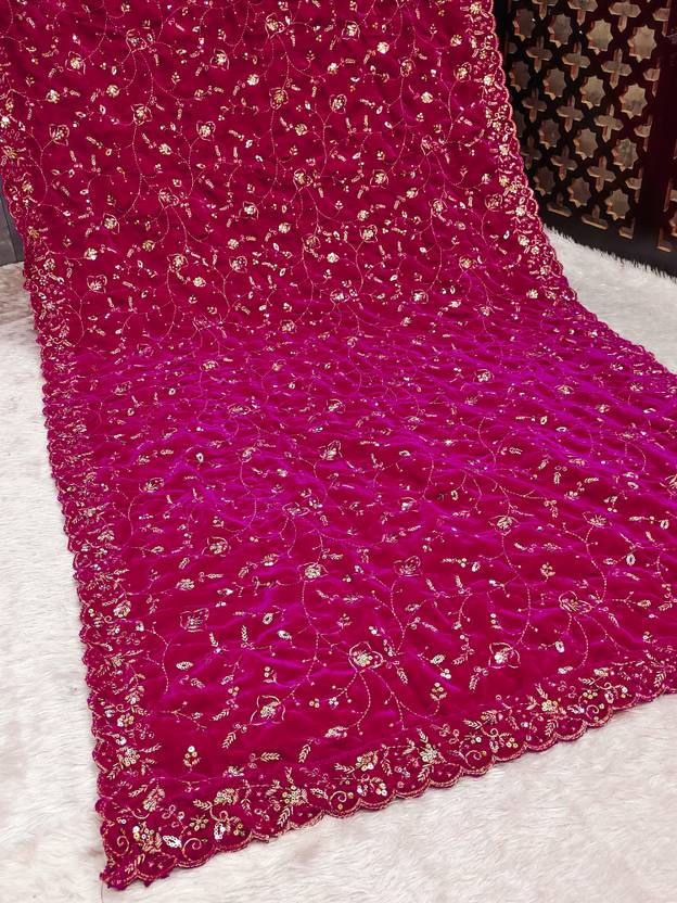 Velvet Embroidered Pink Women Dupatta