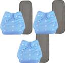 Smiling Cart 3pc Cloth Diapers and 3pc Wet-Free Insert ,Reusable( set of 3, Sky Blue )