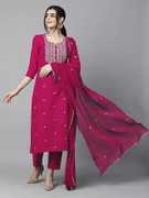 Reyon Kurta Pant With Dupatta Set Embroidered Kurta, Churidar & Dupatta Set