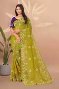 Elevate your style with our Chiffon Party Wear Saree, designed to make a statement at any special occasion. Crafted from luxurious chiffon fabric, this saree exudes elegance and sophistication, perfect for adding a touch of glamour to your ensemble. Paired with a matching blouse piece, this ensemble ensures a complete and stunning look. The lightweight and airy chiffon fabric drapes beautifully, while the intricate details and embellishments add a touch of allure. Whether you're attending a wedding, reception, or festive celebration, this Chiffon Party Wear Saree is tailored to make you stand out with its timeless appeal and modern aesthetics.