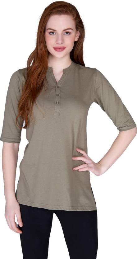 New collection of mandarin collar t-shirt/top from the brand S & M. This is mandarin collar style V-neck top/t-shirt with side cut and half sleeve. This top/t-shirt can be part of your everyday lifestyle. It is made from cotton blend hosiery fabric. It is available in M, L, XL, XXL and 3XL size. The length is fixed 28 inch in all sizes. The measurement of chest is 36, 38, 40, 42 and 44 inch in M to 3XL sizes consecutively. Refer size chart before purchase.