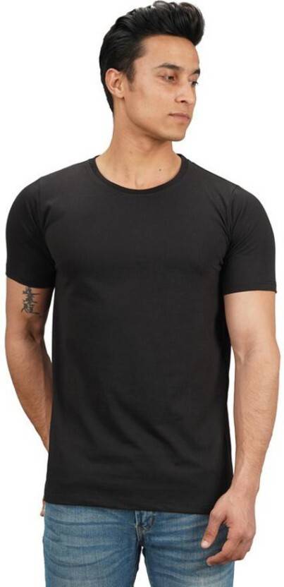 Smooky Men Solid Round Neck Polyester Black T-Shirt