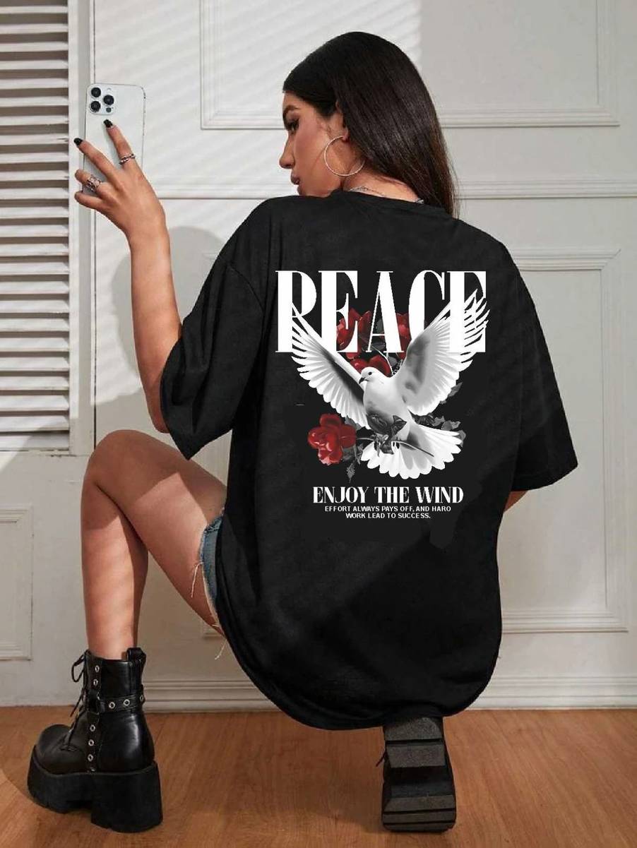 Men Printed Round Neck Cotton Blend Black T-Shirt