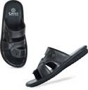 Introducing the SMOXX Men's Solid Casual Flat Slipper Footwear, the perfect blend of style, comfort, and durability. Crafted from premium quality leather, these slip-on fashion slippers are designed to offer a refined, minimalist look that suits both casual and semi-formal settings. Whether you're stepping out for a quick errand or relaxing at home, these slippers promise exceptional comfort and a sleek appearance. The SMOXX Men's Leather Slip-on Fashion Slipper Chappals feature an anti-skid sole, ensuring a secure grip on various surfaces, making them suitable for both indoor and outdoor wear. The high-quality PU (Polyurethane) Footwear construction provides long-lasting durability and resilience, even in daily use. The slip-on design adds convenience, allowing you to effortlessly slide them on and off, saving time without compromising on style. Comfort is a top priority with these slippers. They come equipped with a cushioned insole that provides superior arch support and all-day comfort, ideal for long hours of wear. The lightweight construction minimizes foot fatigue, ensuring your feet remain comfortable throughout the day. The anti-skid feature ensures you stay steady and balanced, preventing slips and falls, especially on wet or slippery surfaces.