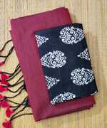 This elegant saree is crafted from handloom cotton, making it comfortable and breathable. The solid plain body is complemented by a subtle sheen, adding a touch of sophistication. The separate Jaipuri printed blouse material in a contrasting color offers a stylish and versatile option to complete your look.