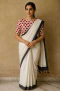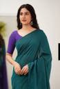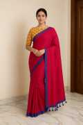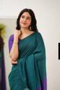 SMRITI HANDLOOM Solid/Plain Handloom Handloom Pure Cotton Saree (Light Blue, Purple)