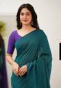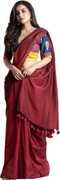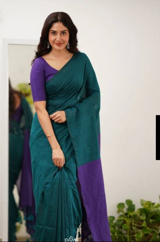 SMRITI BOUTIQUE Solid/Plain Handloom Handloom Pure Cotton Saree (Light Blue, Purple)