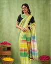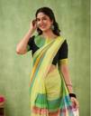 Embracing traditional craftsmanship, this saree is crafted from cotton using handloom weaving. The breathable fabric keeps you comfortable throughout the day. The handloom texture also adds a subtle artisanal touch that highlights the craftsmanship behind this saree. Furthermore, it can maintain its shape and look even after repeated wear, making it suitable for daily wear or light celebrations.