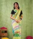 SARKARETHNIC Solid/Plain Handloom Handloom Pure Cotton Saree (Light Green, Multicolor)