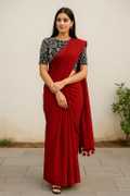 Plain Saree with Running blouse and Extra kalamkari Print Blouse piece