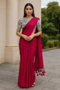 Magenta Magic: Pure Cotton Handloom Saree with Black Kalamkari Blouse