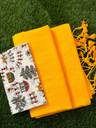 SMRITI BOUTIQUE Solid/Plain, Printed Kalamkari Handloom Pure Cotton Saree (Yellow, Maroon)