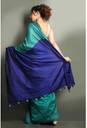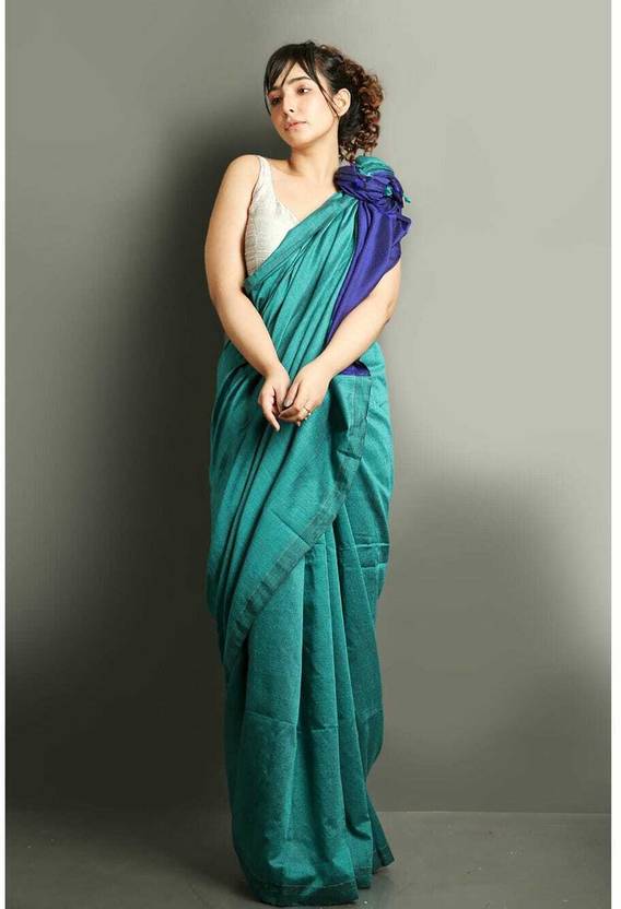 SMRITI BOUTIQUE Solid/Plain Handloom Handloom Cotton Blend Saree (Light Blue, Blue)