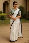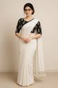 SMRITI HANDLOOM Solid/Plain Handloom Handloom Pure Cotton Saree (White)