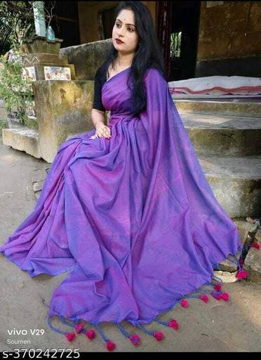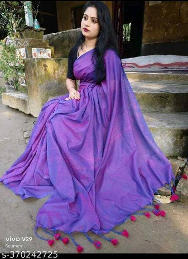 SMRITI BOUTIQUE Solid/Plain Handloom Handloom Pure Cotton Saree (Purple)
