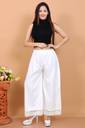 Thanks to their solid pattern, these women's palazzos offer a look of understated grace. Also, the clean lines of the pattern are enhanced by a delicate lace trim at the bottom. It adds a refined detail without overwhelming the silhouette. Moreover, the elegance lies in their minimalism, allowing you to express your personal style effortlessly.