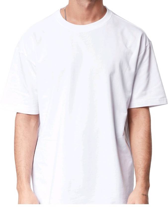 Men Solid Round Neck Pure Cotton White T-Shirt