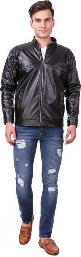 Men Solid Leather Jacket
