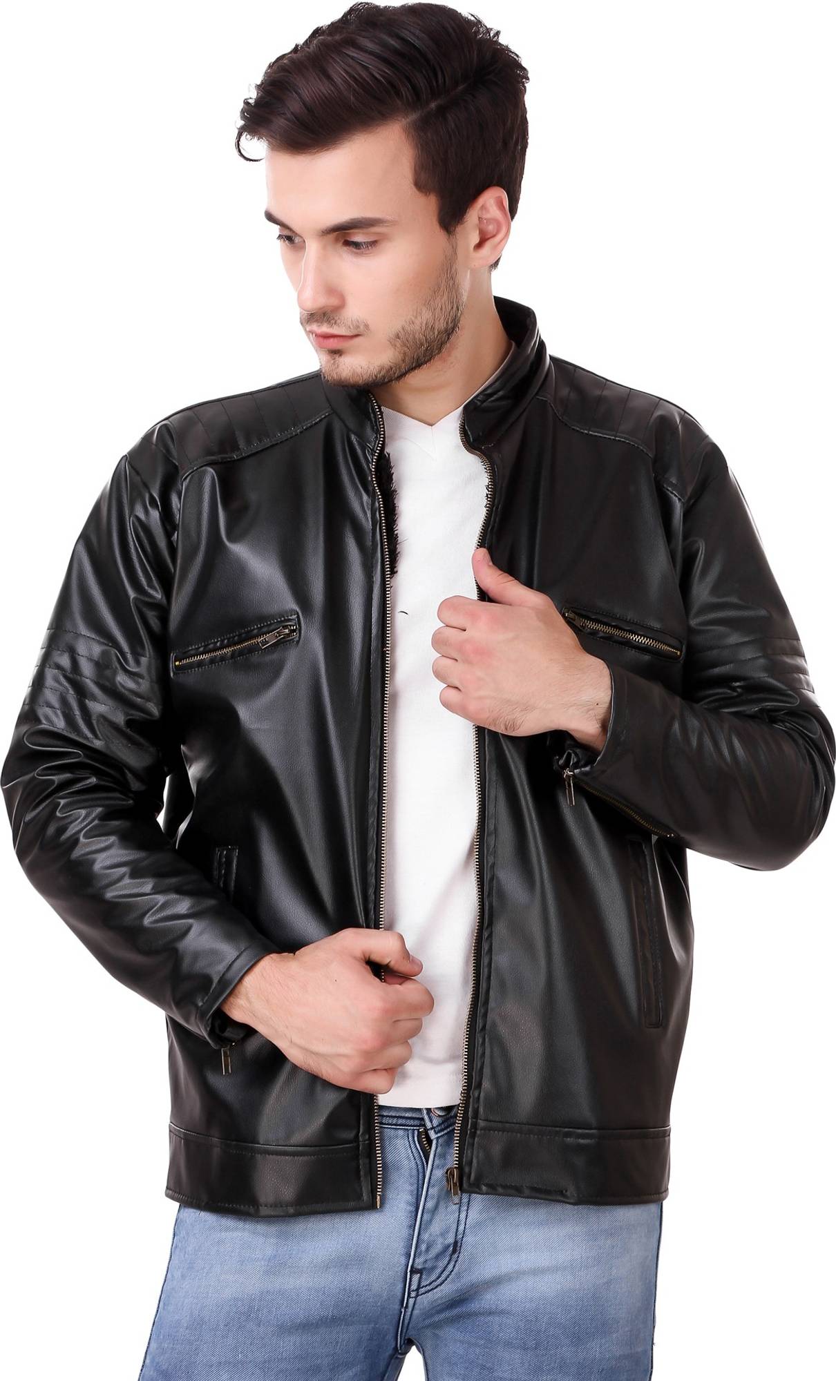 Snapit Men Solid Leather Jacket