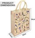 30 x 12.5 x 34 cm (LxWxH), These Jute Bags are Reusable gift bags one can also use it as shopping bag, tote bag, messenger bag, Handbag, shoppers totes, Lunch Bag, Tiffin Bag, Jute bags for Lunch, Lunch bags for office, return gift bag.