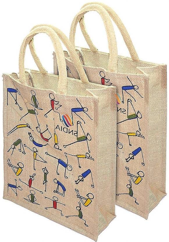 2 Pack Yoga Printed Eco-Friendly Jute Bag/Tiffin/Shopping/Grocery Hand Bag