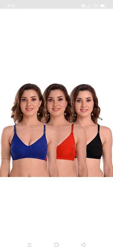 Pack of 3 Women Full Coverage Non Padded Bra (Blue, Black, Red)