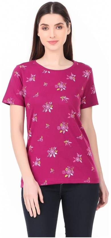 Women Printed Round Neck Cotton Blend Multicolor T-Shirt