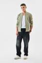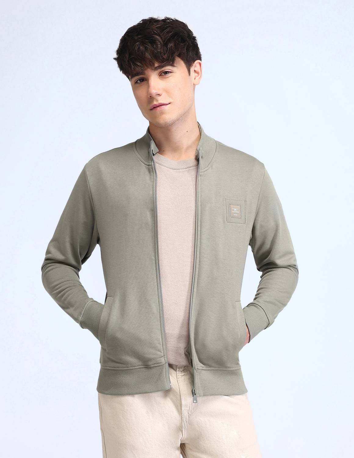 This slim-fit textured bomber jacket in sage green is crafted from a durable polyester blend. Featuring a crew neckline, full sleeves with elastic cuffs, and a zip closure, it offers a sleek, modern look. Lightweight and versatile, it's perfect for casual wear.