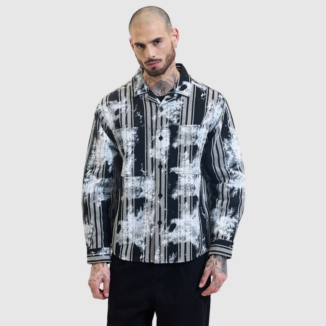 Make a bold statement with this black shacket from Snitch. Crafted from a cotton blend, this relaxed-fit jacket features stylish vertical stripes. The button closure adds a touch of sophistication, making it perfect for layering or wearing as a standalone piece.