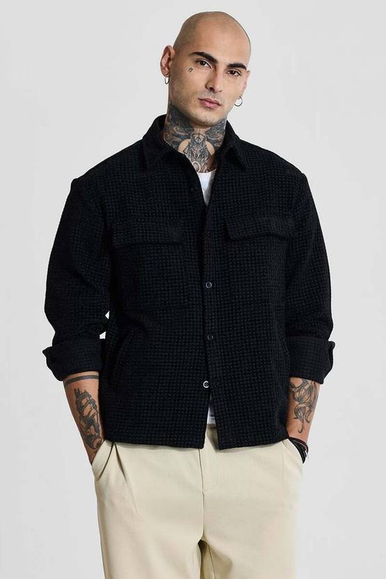 Introducing the versatile black shacket from Snitch, a perfect blend of style and functionality. This relaxed-fit outerwear piece boasts a textured pattern and a poly-blend composition of 77% polyester, 13.7% rayon, and 9.3% cotton. Designed for casual occasions, it features four practical pockets and a button closure for convenience. The full-length regular sleeves and spread neckline add to its laid-back appeal. With no distressing, this shacket maintains a clean, polished look. The relaxed style ensures comfort without compromising on fashion. Easy to care for, it's machine washable, making it a practical addition to your wardrobe. Whether you're running errands or meeting friends, this Snitch shacket is your go-to choice for effortless style.