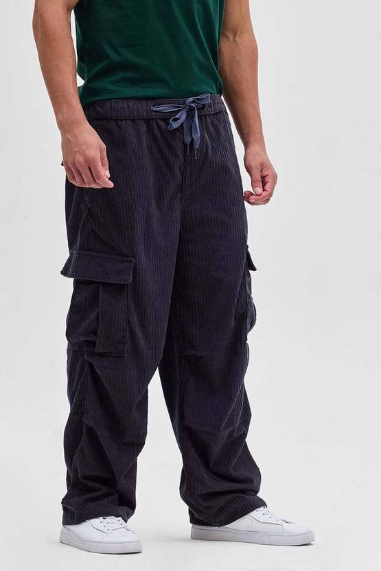 Experience ultimate comfort with these navy cargo trousers from Snitch. Made from polyester with a textured corduroy detail, these comfort-fit pants feature a convenient drawstring closure. Perfect for casual outings, they offer both style and functionality.