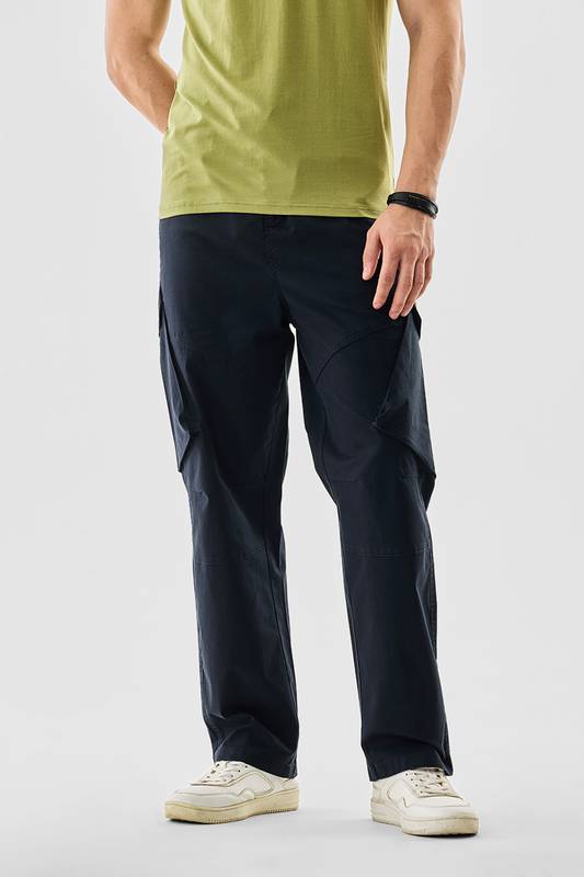 Crafted from a premium cotton blend, these relaxed-fit cargo pants feature utility pockets and an elastic waistband with drawstring for comfort and functionality. Perfect for casual outings or streetwear looks, the mid-rise design ensures a versatile fit for all-day wear.