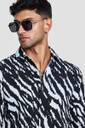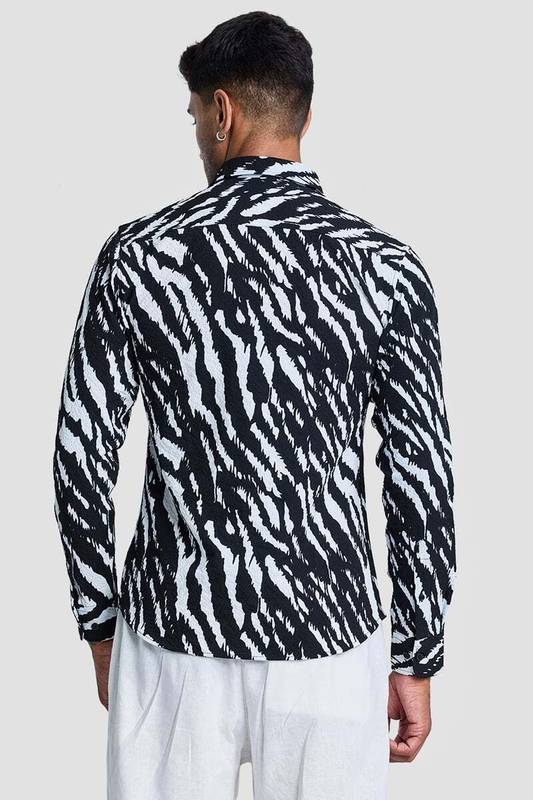 Make a bold fashion statement with this eye-catching slim fit shirt from Snitch. Featuring a striking animal pattern on a sleek black background, this poly-blend shirt is designed to turn heads and showcase your unique style. The slim fit silhouette accentuates your physique, creating a modern and tailored look that's perfect for both casual and semi-formal settings. The button closure adds a touch of classic elegance, allowing for easy wear and removal. Crafted from a high-quality poly blend, this shirt offers comfort, durability, and easy maintenance, making it ideal for regular wear. The animal pattern adds a touch of wild sophistication to your ensemble, perfect for those who dare to stand out from the crowd. Whether you're heading to a night out with friends, a casual business meeting, or a weekend brunch, this Snitch shirt will elevate your look effortlessly. The versatile design allows for various styling options - pair it with sleek trousers for a more formal look, or dress it down with jeans for a casual yet stylish appearance. The absence of additional details keeps the focus on the striking pattern, allowing you to accessorize as you please. Embrace your wild side and make a lasting impression with this unique and fashionable Snitch slim fit shirt.
