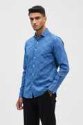 Stay cool and stylish in this slim-fit blue shirt from Snitch. Crafted from pure cotton, this regular shirt showcases a subtle self-design pattern. With its button closure and comfortable fit, it's an ideal choice for everyday wear or casual gatherings.