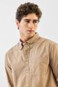 This beige cotton shirt combines a regular fit with a button-down collar for a classic look. Featuring full sleeves, a chest pocket, and a curved hem, it’s perfect for casual outings or semi-formal occasions. Crafted for comfort and breathability, this versatile piece is a wardrobe essential.