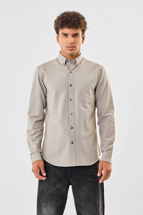 Men Slim Fit Solid Button Down Collar Casual Shirt