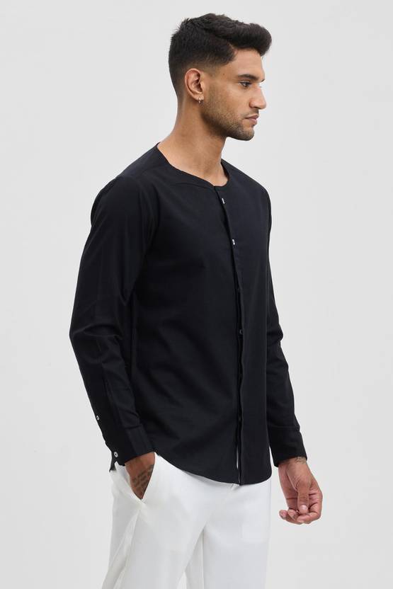 Achieve a timeless look with this black Snitch shirt. The slim fit and solid pattern offer versatility for various occasions. Crafted from cotton, it provides breathability and comfort. The button closure ensures a classic finish to this essential piece.
