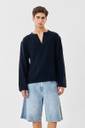 Crafted from a premium blend of 80% cotton and 20% linen, this navy blue box fit shirt offers unmatched comfort and breathability. Featuring a V-neckline, full sleeves, and a solid pattern, it’s perfect for casual outings or smart layering. A versatile and stylish choice for everyday wear.