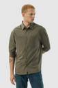 This slim-fit olive shirt is crafted from textured polyester, offering a modern look with full sleeves, a classic collar, and dual patch pockets. Lightweight and durable, it’s perfect for casual outings or semi-formal occasions. Machine washable for easy care.