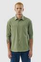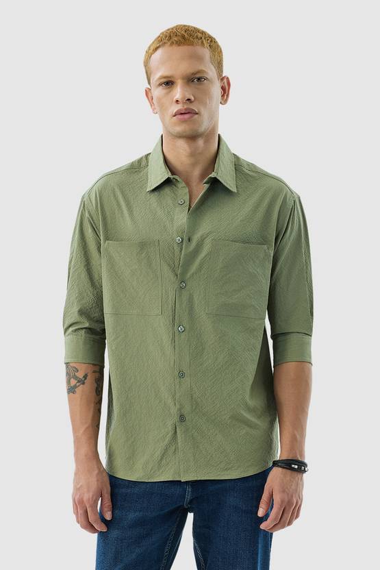 This slim-fit sage green shirt is crafted from textured polyester fabric, offering durability and comfort. Featuring full sleeves, a classic collar, and buttoned closure, it is perfect for casual outings or semi-formal occasions. Machine washable for easy care.