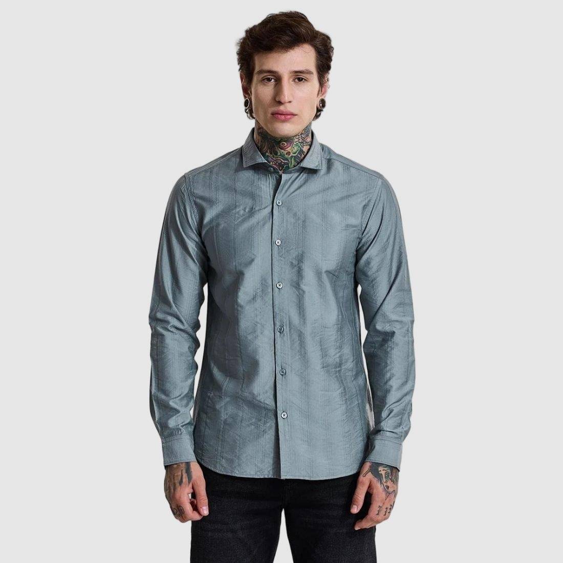 Make a statement with this grey rayon-blend shirt from Snitch. Featuring a slim fit and solid pattern, this regular-type shirt offers a sleek, modern look. The button closure adds a classic touch, making it suitable for both casual and semi-formal settings.