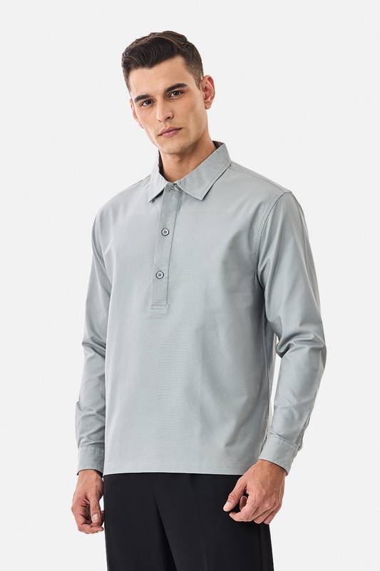 This men's light grey shirt combines a regular fit with breathable 100% cotton fabric for all-day comfort. Featuring a classic point collar, buttoned placket, and smooth woven texture, it?s perfect for smart casual occasions or everyday wear. A versatile addition to your wardrobe.