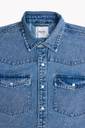 This light blue denim shirt, crafted from 100% cotton, offers a regular fit with a Western-inspired design. Featuring twin flap chest pockets, snap button closure, and a curved hemline, it combines style and comfort. Perfect for casual wear, this durable shirt is a must-have for the modern man.