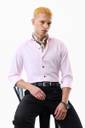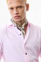 This slim-fit shirt in a soft pink hue is crafted from a blend of 87% Polyester and 13% Modal. Featuring a classic collar, full sleeves, and buttoned cuffs, it offers comfort and sophistication for both formal and casual occasions.