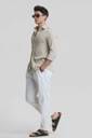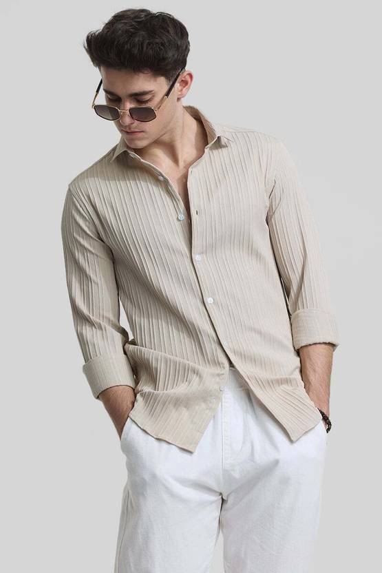 Add a touch of sophistication to your wardrobe with this beige slim-fit shirt from Snitch. Made from high-quality polyester, this shirt offers both comfort and style. The vertical stripes pattern elongates your silhouette, creating a sleek and polished appearance. Perfect for office wear or smart-casual events, this regular type shirt features a classic button closure for easy wearing. The slim fit design accentuates your body shape, giving you a modern and tailored look. Versatile and stylish, this Snitch shirt can be paired with dress pants for a formal setting or with jeans for a more relaxed ensemble. Elevate your fashion game with this timeless piece that combines contemporary design with classic elegance.